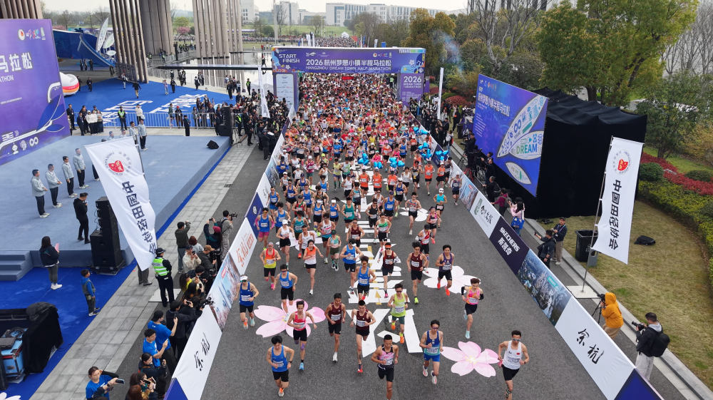 新华社客户端浙江频道3月29日电(记者夏亮)29日,2026杭州梦想小镇半程马拉松在余杭鸣枪开跑。本届赛事由中国田径协会认证,杭州市余杭区人民政府主办,赛事规模达15000人,创历史新高。