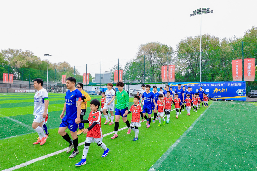 由京城部委高校央企绿茵联盟举办、江苏银行北京分行冠名的第四届“江苏银行·新征程杯”足球联赛于4月19日在北京德瑞凯通足球场正式开幕。包括金城、新青年和成方等中央部委和高校组成的八支男子足球队参加竞逐。